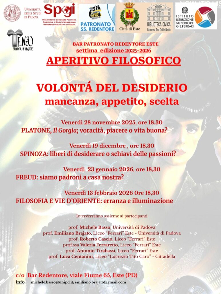 L'APERITIVO FILOSOFICO anche quest'anno torna presso il Bar del patronato Redentore con 4 interessanti e stimolanti appuntamenti!